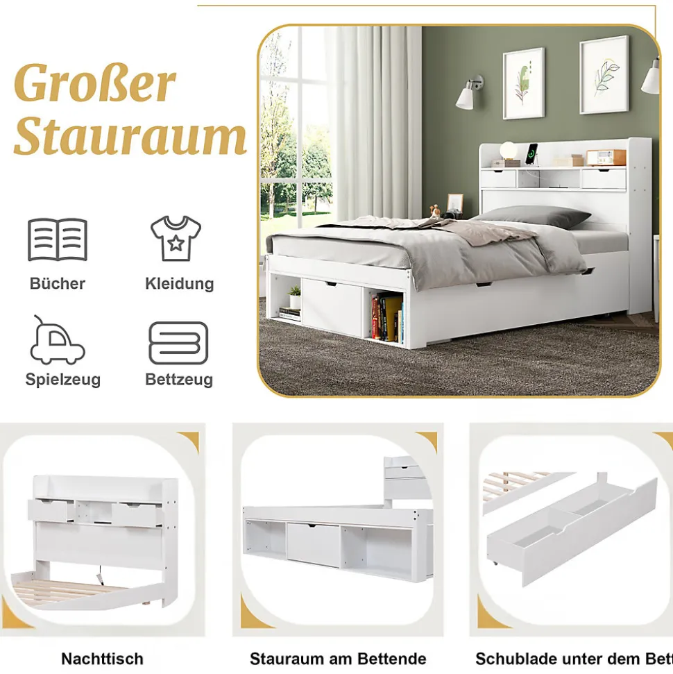 - 【Design multifonctionnel】 Ce lit dispose d’un port USB intégré pour charger facilement les appareils électroniques, et de nombreux espaces de rangement au niveau de la tête, du pied et des côtés pour organiser vêtements, jouets et livres.