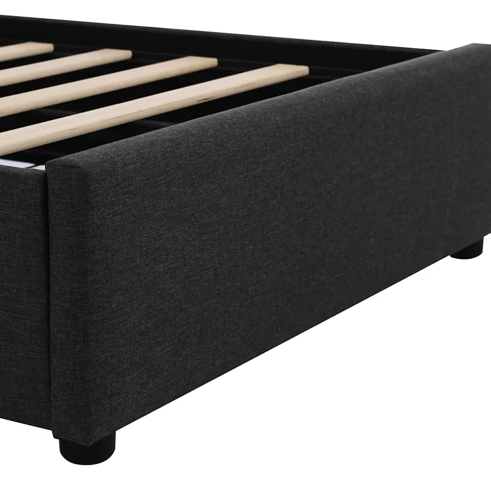 ▶ ▶Détails▶────────────────● Dimensions totales (L x l x H) : 208 x 100,5 x 93,5-103 cm● Distance entre le tête de lit et le mur : 16,5-26 cm● Surface de couchage : 90 x 200 cm● Couleur : Noir● Poids brut/net : 28,5 / 32 kg● Matériaux : Bois massif + Lin + Métal● Poids maximal de l’utilisateur : 136 kg / 300 LBS● Espace de rangement interne : 75 x 50 x 15 cm► Remarques ►※ Le matelas n’est pas inclus dans la livraison.※ En raison des mesures manuelles, un écart de 2-3 cm peut survenir.※ Les images du produit sont prises avec des produits réels, mais des différences de couleur peuvent survenir en raison de la lumière ou d’autres facteurs.※ Ce produit sera expédié en 2 colis, qui peuvent ne pas arriver en même temps. Merci de patienter.