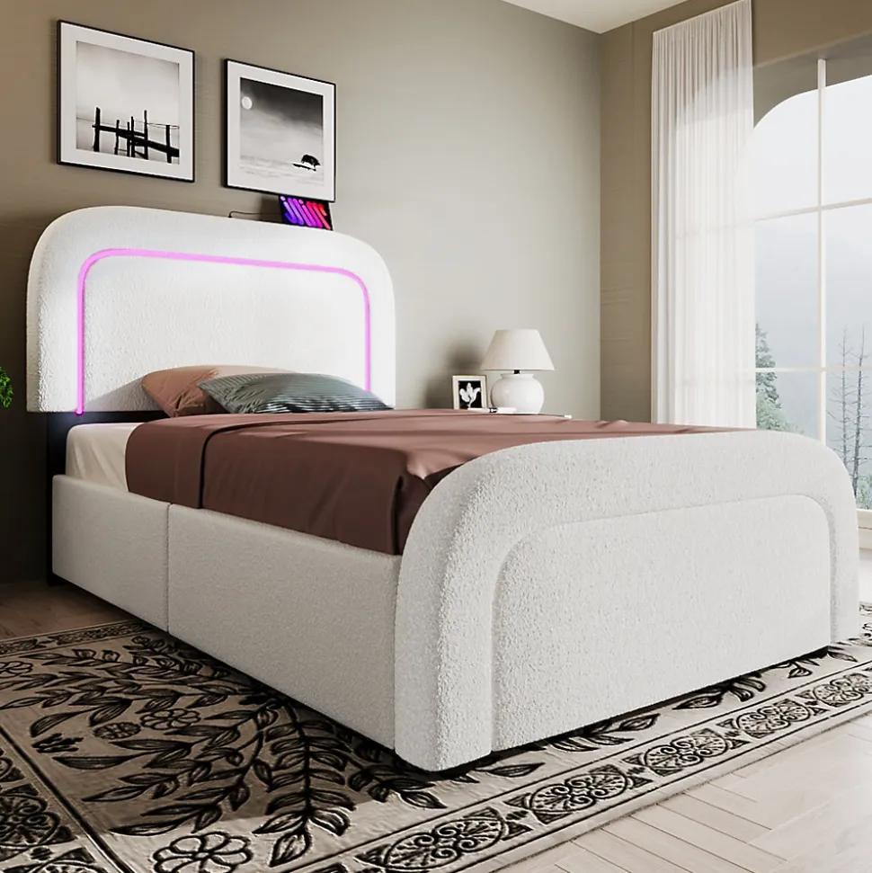 - 【Confort Premium】 Tête et pied de lit rembourrés avec silhouette courbée en tissu Sherpa moelleux, offrant un style rétro élégant et une sensation cocooning exceptionnelle.