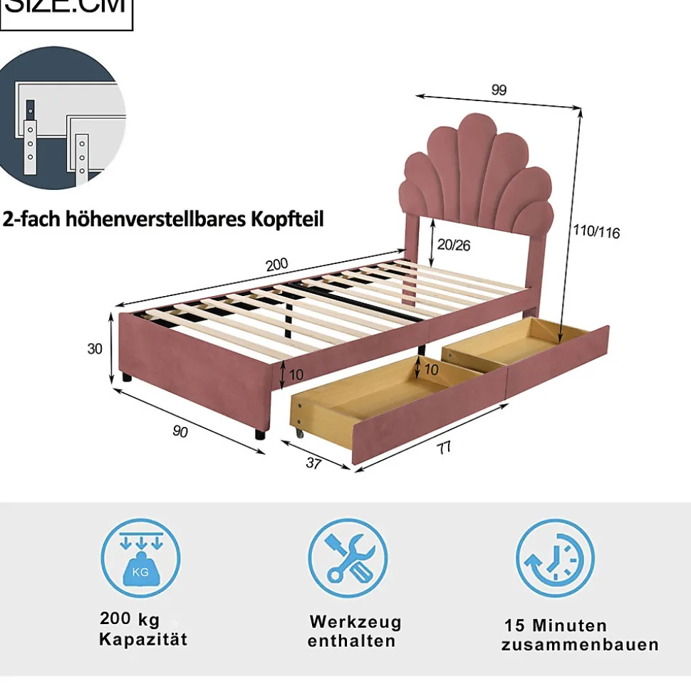 - 【Samtstoff Confortable】 Recouvert de velours de haute qualité, ce lit est non seulement esthétique, mais aussi agréable au toucher. Il crée une atmosphère chaleureuse et accueillante, parfaite pour les moments de détente après une journée bien remplie.