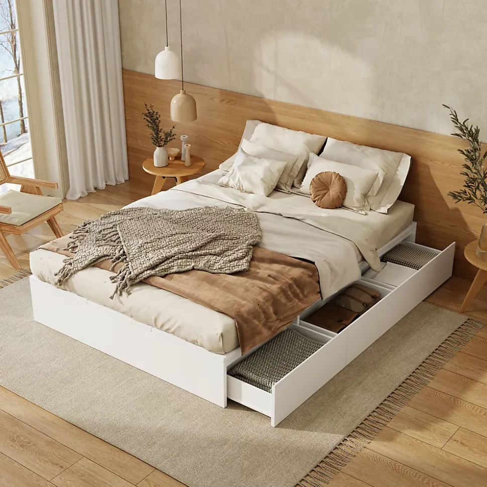 - 【Tiroirs fonctionnels】 Trois tiroirs latéraux facilitent l’organisation quotidienne des vêtements, plaids et accessoires, évitant le désordre et rendant chaque objet facilement accessible.