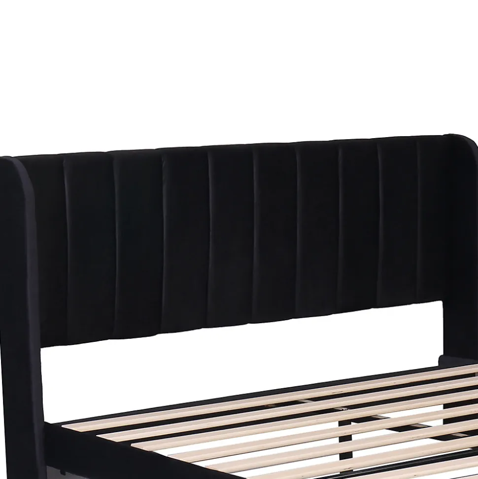▶ ▶ Détails ▶────────────────● Dimensions du produit : 207,5 x 166 x 95 cm (L x l x H)● Dimensions du matelas applicable : 160 x 200 cm (matelas non inclus)● Type de matelas : Matelas non inclus● Couleur : Noir● Type de sommier : Sommier inclus● Détails de rangement : 2 tiroirs de rangement● Capacité maximale : 300 kg● Matériaux : Velours + Bois + Métal● Nombre de colis : 2► Remarques ►※ En raison de la mesure manuelle, une différence de 2 à 3 cm peut survenir.※ Des différences de couleur peuvent apparaître entre l’image du produit et le produit réel en raison de l’éclairage. Veuillez vous référer au produit reçu.※ Ce produit est expédié en 2 colis, qui peuvent arriver à des moments différents. Veuillez patienter.※ Si vous avez des questions lors de l’installation, veuillez nous contacter dès que possible.
