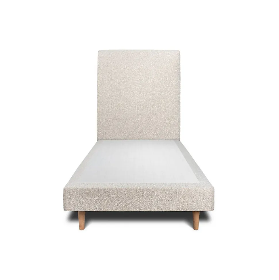 Lit avec tête de lit bouclette et sommier tapissier – Lit en bois massif
