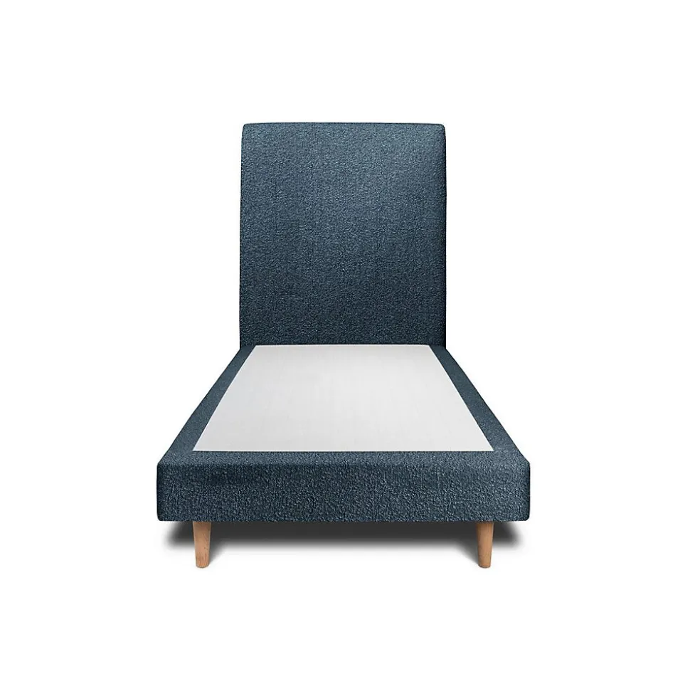Lit avec tête de lit bouclette et sommier tapissier – Lit en bois massif