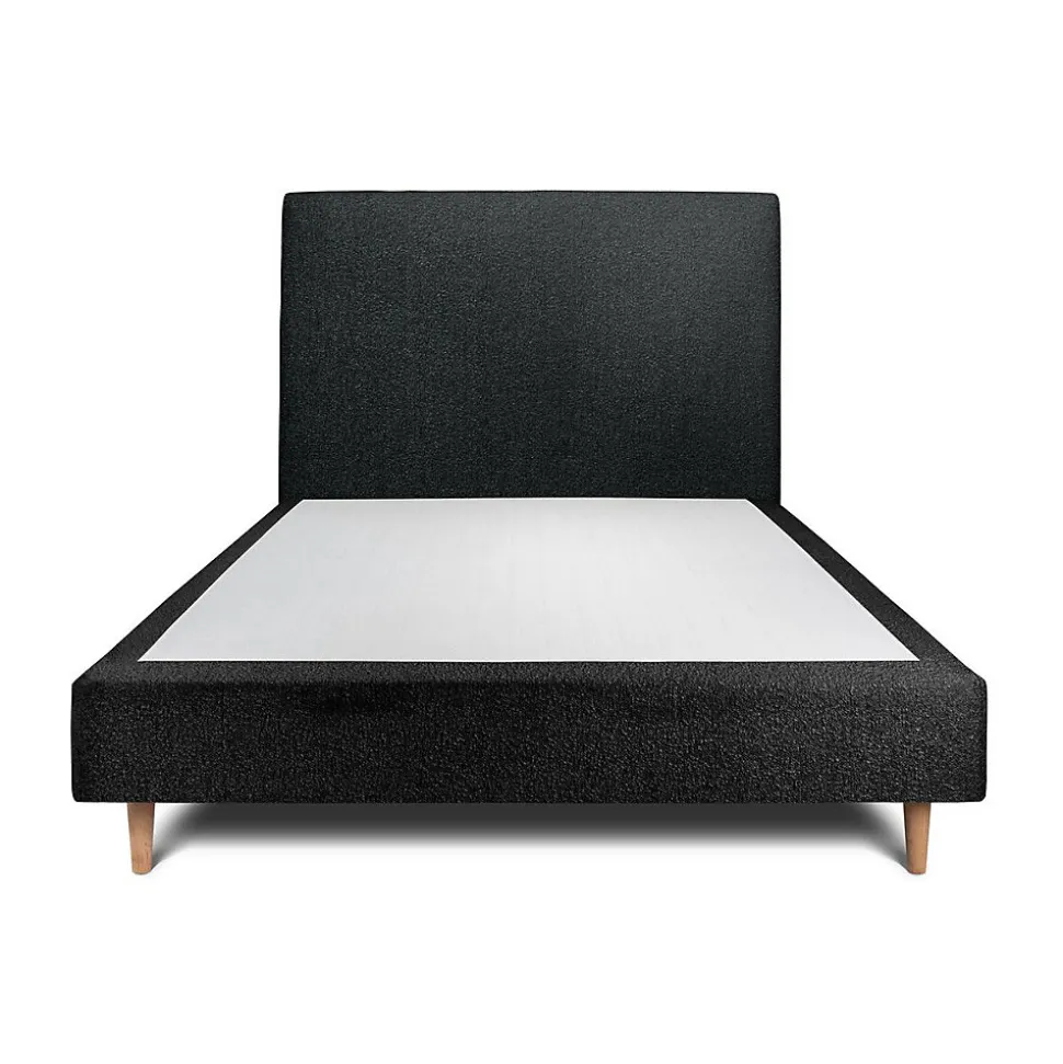 Lit avec tête de lit bouclette et sommier tapissier – Lit en bois massif
