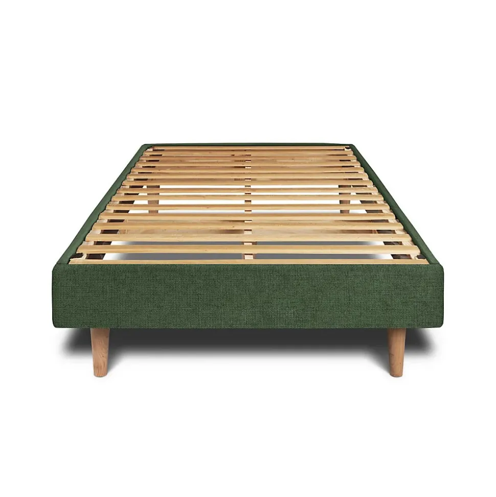 Lit avec tête de lit capitonnée tissu et sommier kit – Lit en bois massif