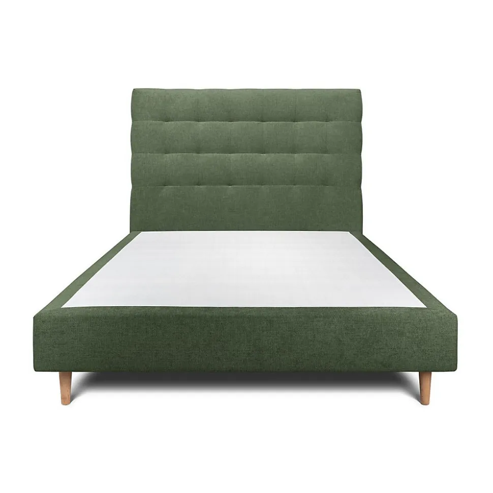 Lit avec tête de lit capitonnée tissu et sommier tapissier – Lit en bois massif