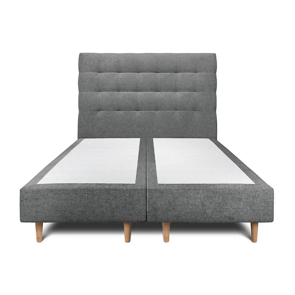 Lit avec tête de lit capitonnée tissu et sommier tapissier – Lit en bois massif