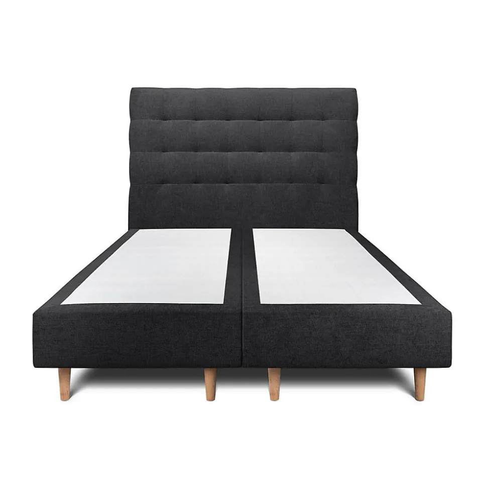 Lit avec tête de lit capitonnée tissu et sommier tapissier – Lit en bois massif