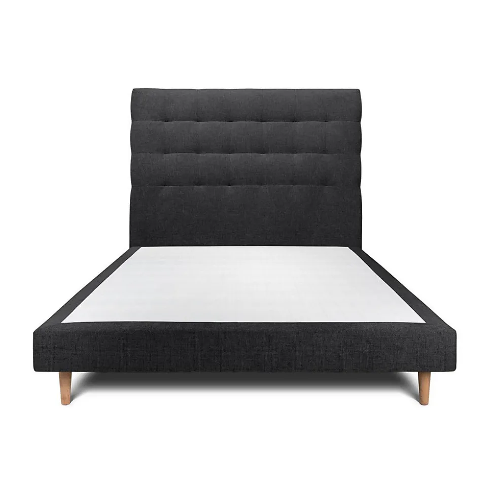 Lit avec tête de lit capitonnée tissu et sommier tapissier – Lit en bois massif