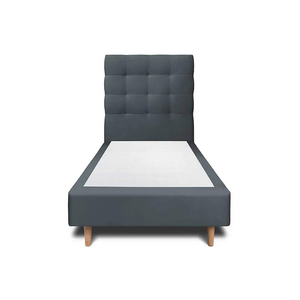 Lit avec tête de lit capitonnée velours et sommier – Lit en bois massif