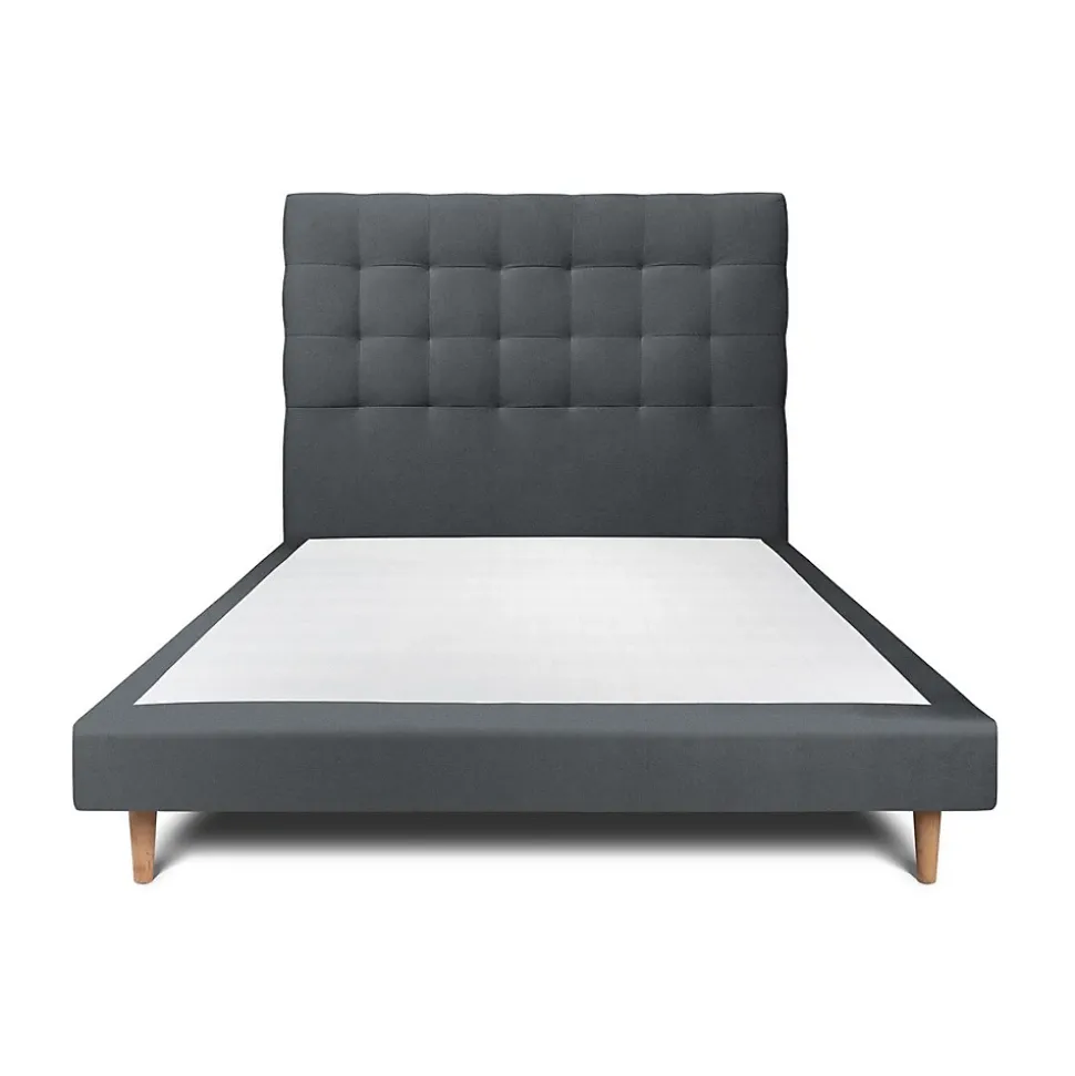 Lit avec tête de lit capitonnée velours et sommier – Lit en bois massif