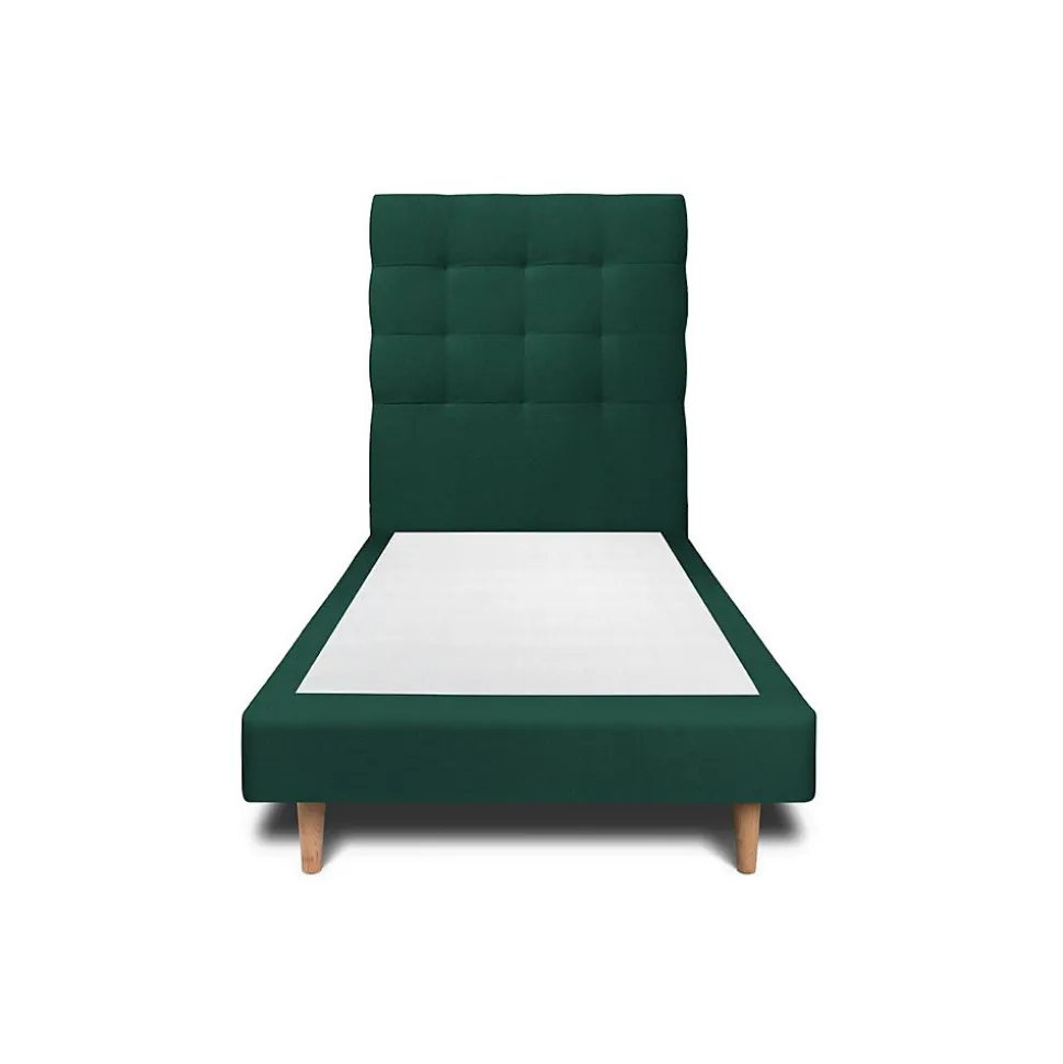Lit avec tête de lit capitonnée velours et sommier – Lit en bois massif