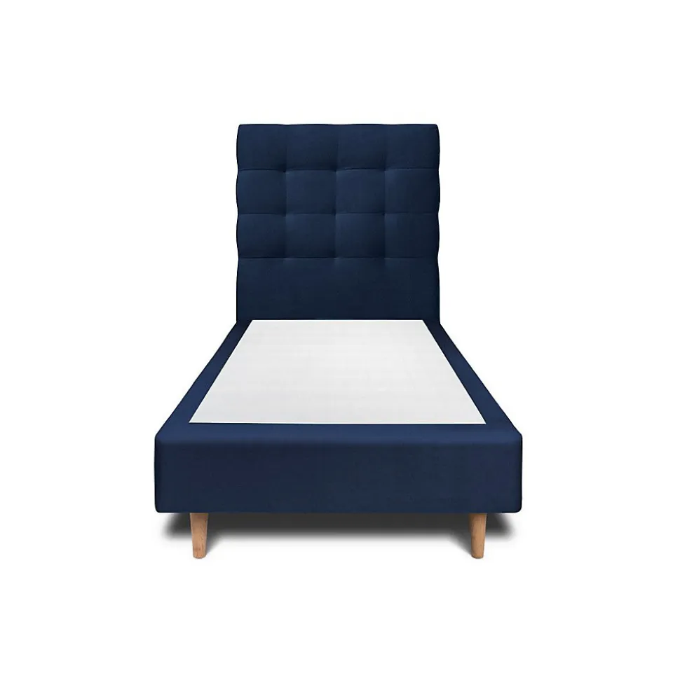 Lit avec tête de lit capitonnée velours et sommier – Lit en bois massif