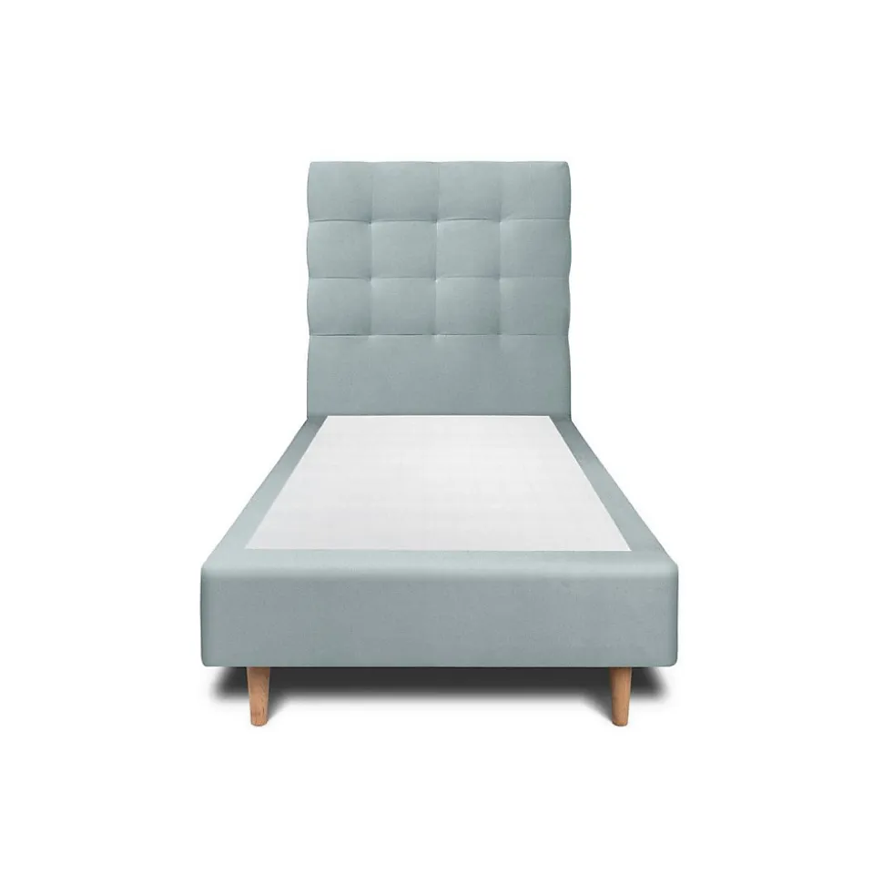 Lit avec tête de lit capitonnée velours et sommier – Lit en bois massif