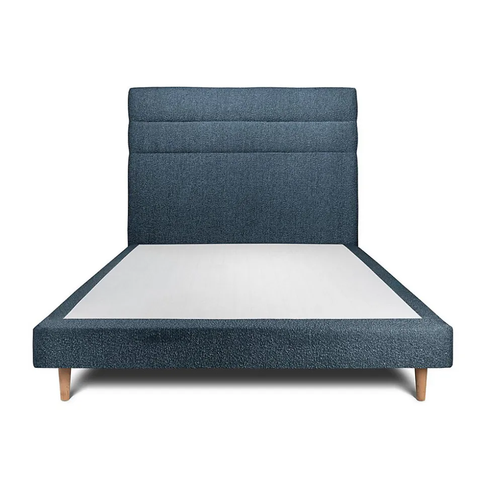 Lit avec tête de lit lignes bouclette et sommier tapissier – Lit en bois massif