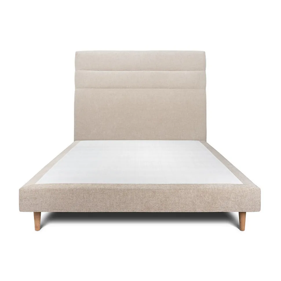 Lit avec tête de lit lignes tissu et sommier tapissier – Lit en bois massif