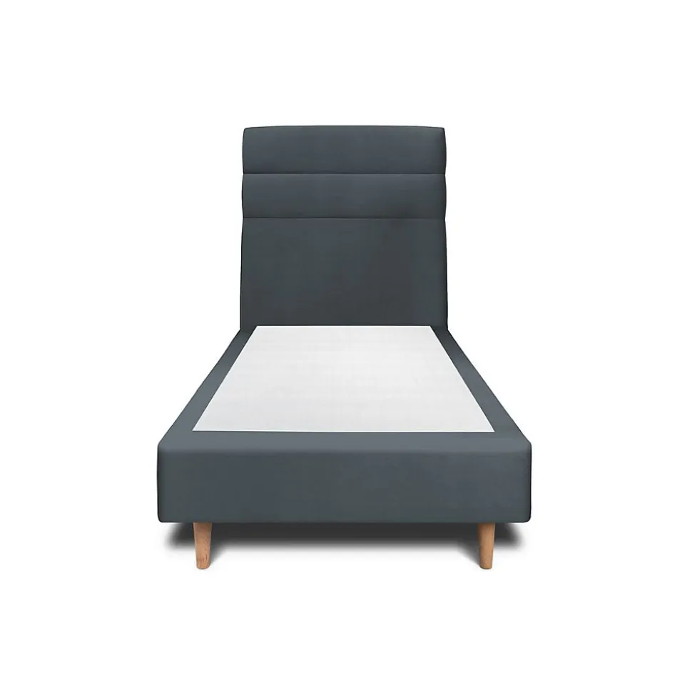 Lit avec tête de lit lignes velours et sommier tapissier – Lit en bois massif