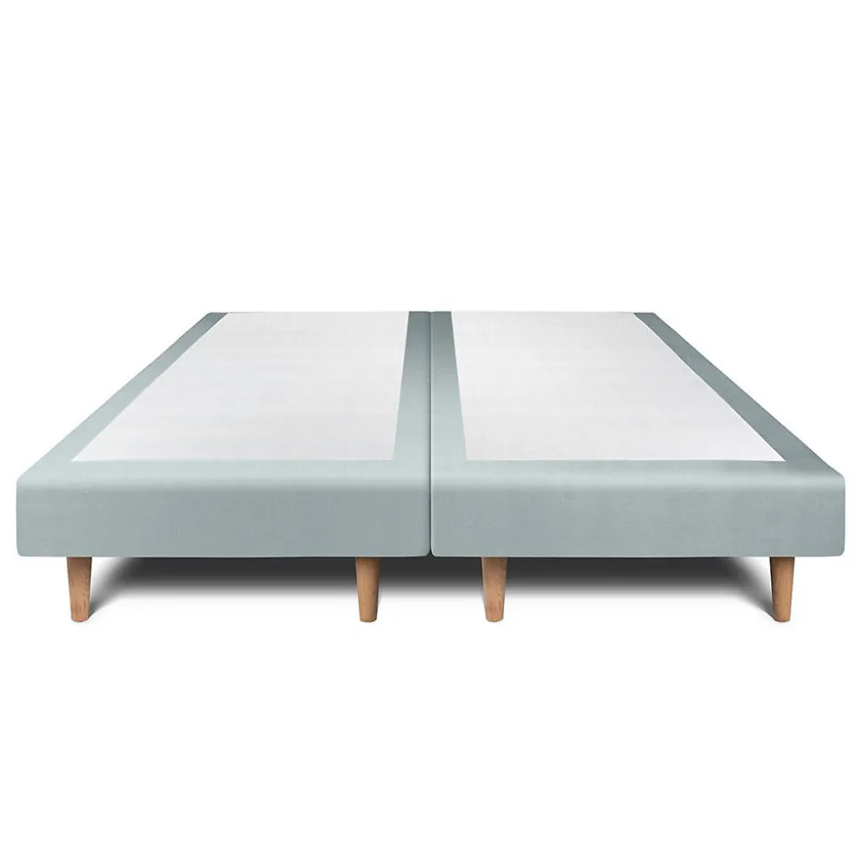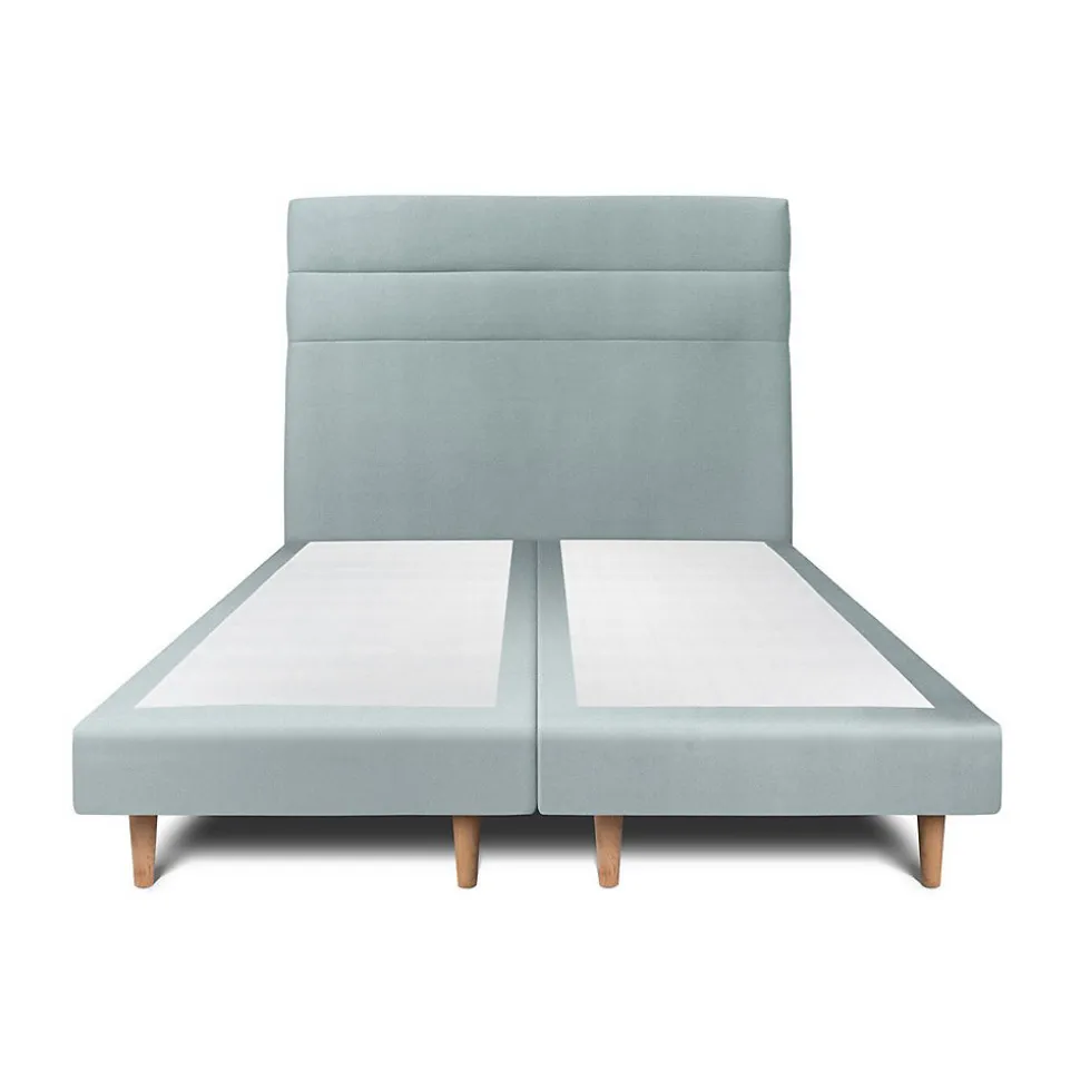 Lit avec tête de lit lignes velours et sommier tapissier – Lit en bois massif