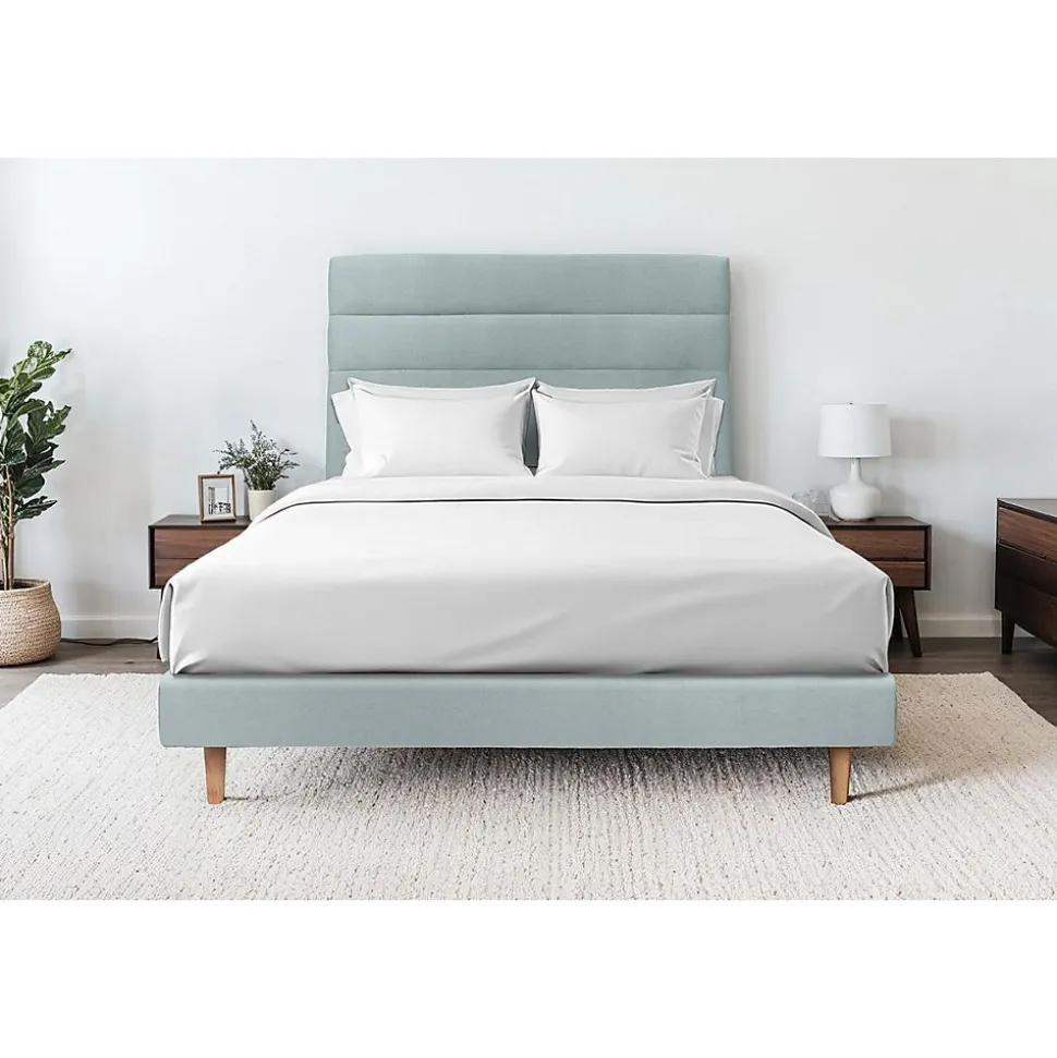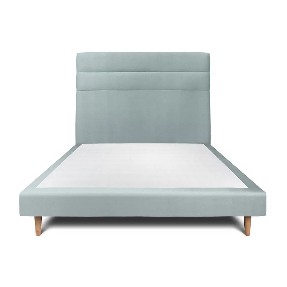 Lit avec tête de lit lignes velours et sommier tapissier – Lit en bois massif