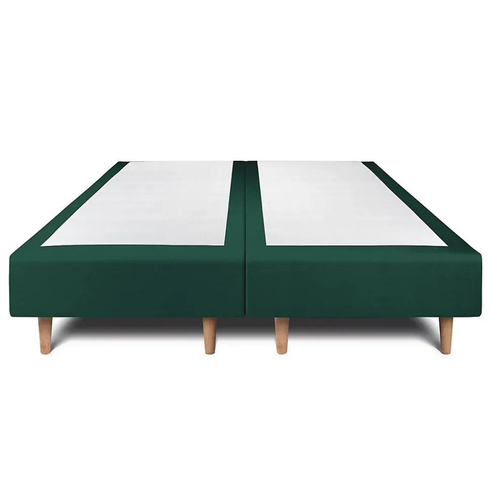 Lit avec tête de lit lignes velours et sommier tapissier – Lit en bois massif