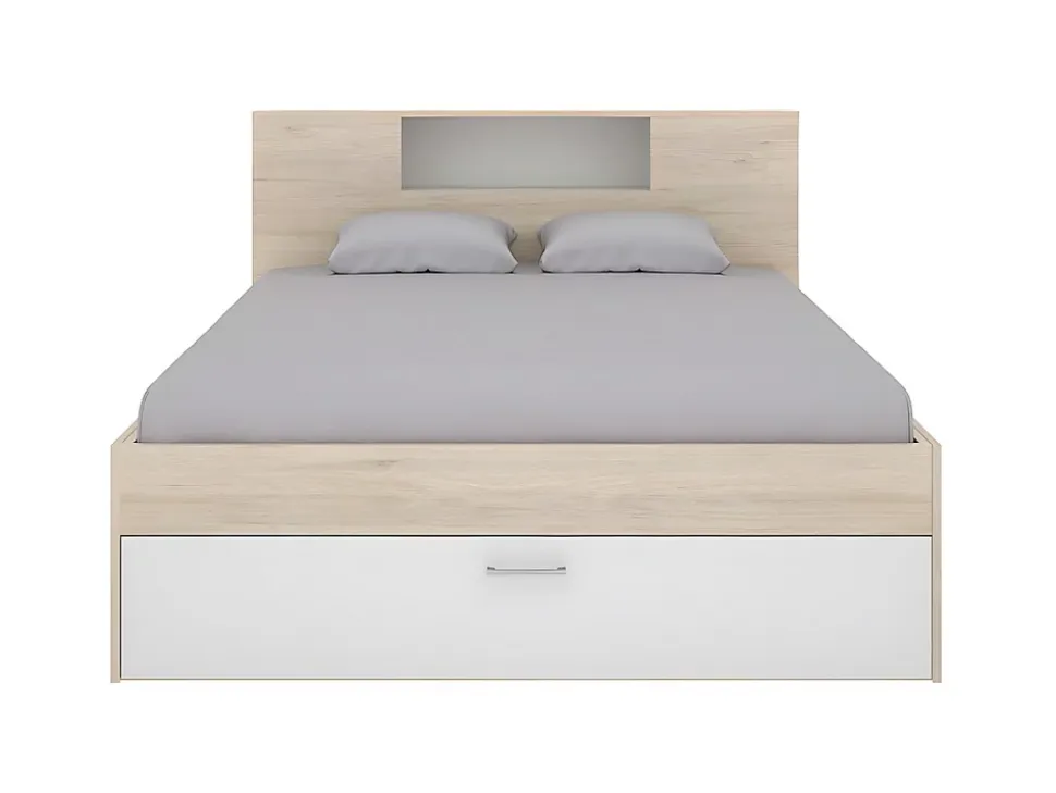 - Cadre de lit Panneau de particule, Panneau et dérivés de bois Naturel clair, Blanc