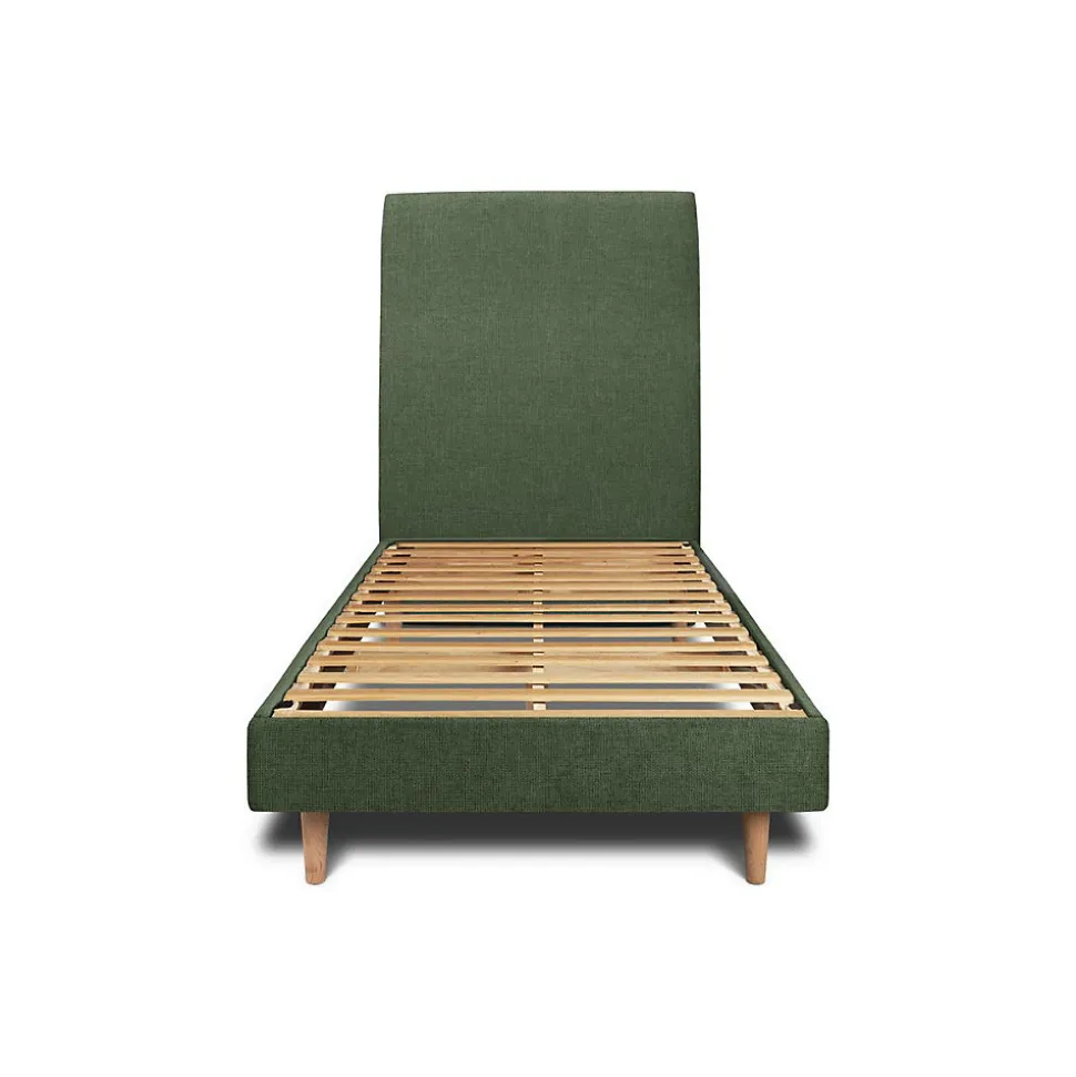Lit avec tête de lit tapissier tissu et sommier kit – Lit en bois massif