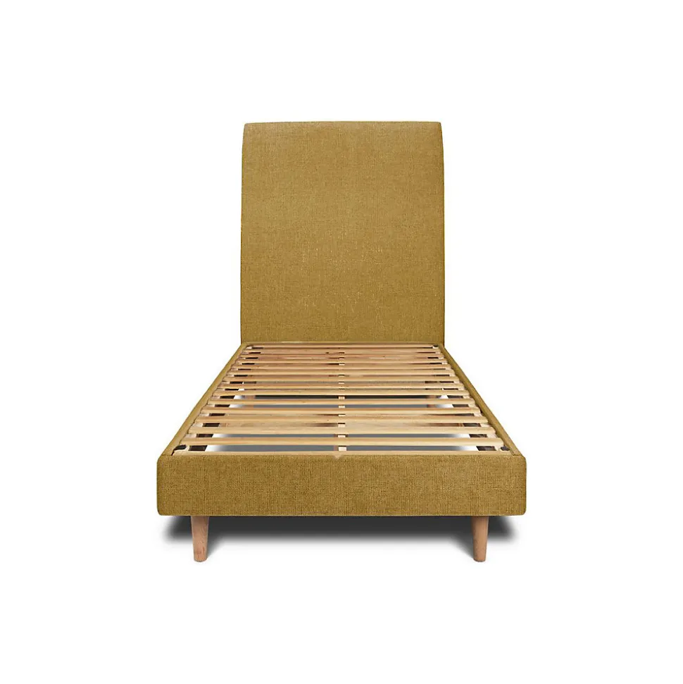 Lit avec tête de lit tapissier tissu et sommier kit – Lit en bois massif