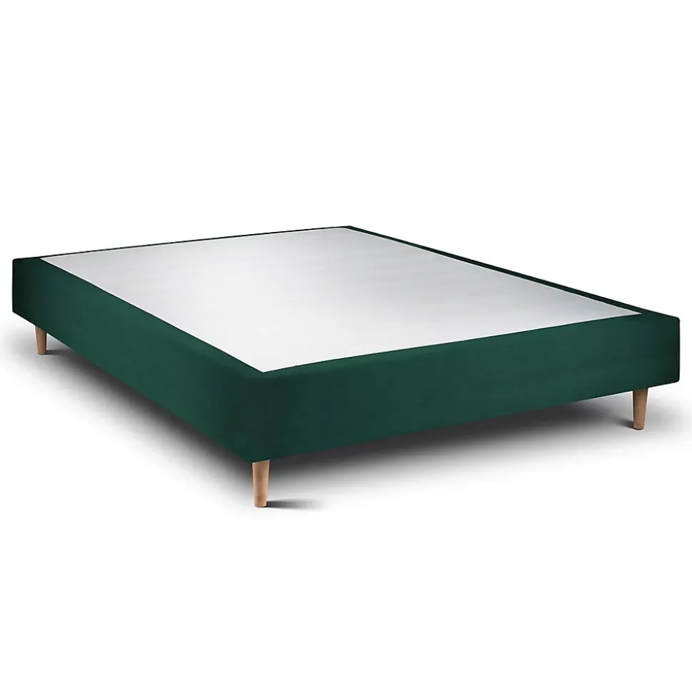 Lit avec tête de lit tapissier velours et sommier tapissier - Lit en bois massif