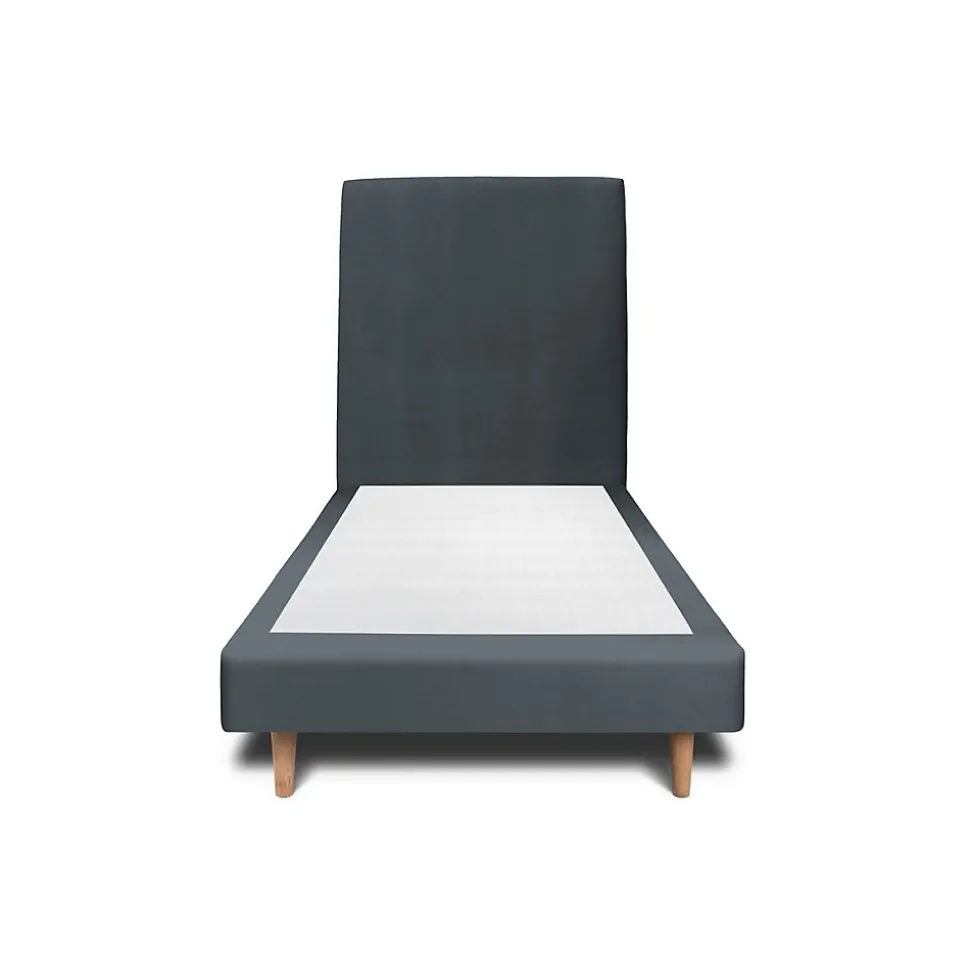 Lit avec tête de lit tapissier velours et sommier tapissier - Lit en bois massif