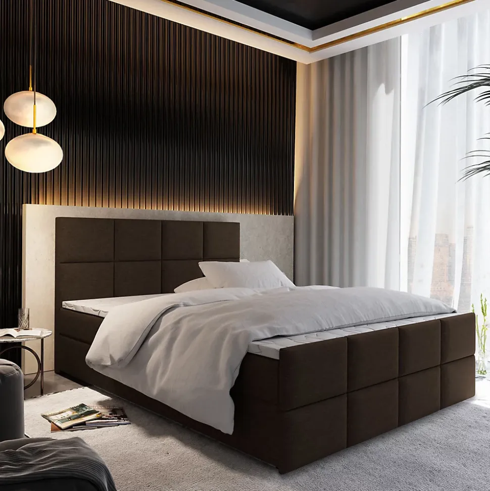 - Design élégant et contemporain – Le lit continental Classique séduit par son style raffiné et sa finition soignée. Son revêtement en tissu Tkanina plecionka de type SAWANA et sa couleur Marron s’intègrent parfaitement à tout type d’intérieur.