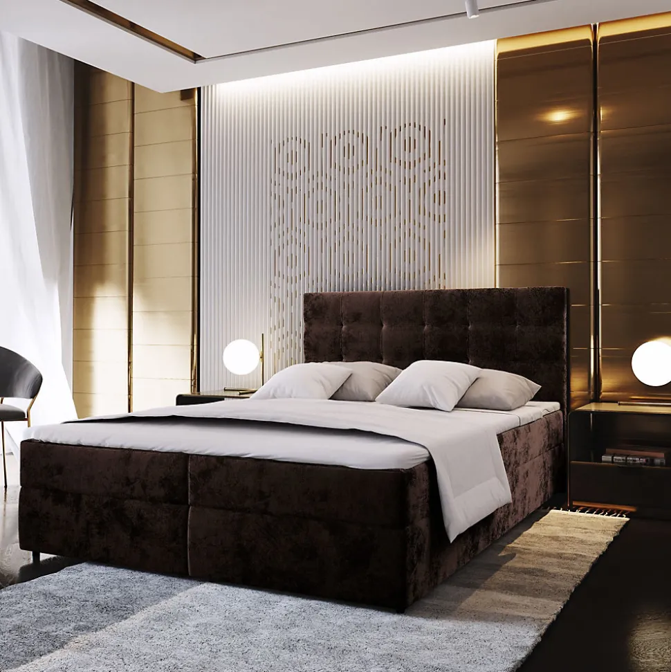 - Design élégant et contemporain – Le lit continental Glamour séduit par son style raffiné et sa finition soignée. Son revêtement en tissu Tkanina pluszowa de type KRONOS et sa couleur Marron s’intègrent parfaitement à tout type d’intérieur.