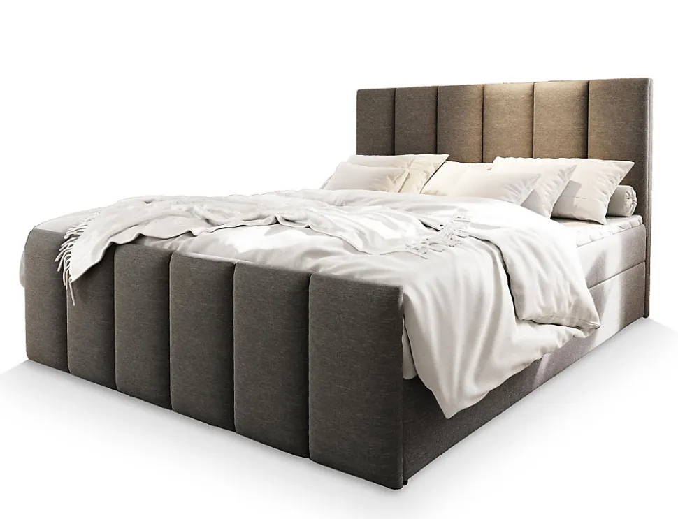 - Design élégant et contemporain – Le lit continental Glamour séduit par son style raffiné et sa finition soignée. Son revêtement en tissu Tkanina plecionka de type SAWANA et sa couleur Gris clair s’intègrent parfaitement à tout type d’intérieur.