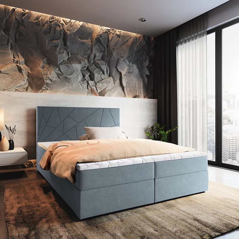 - Design élégant et contemporain – Le lit continental Moderne séduit par son style raffiné et sa finition soignée. Son revêtement en tissu Tkanina plecionka de type INARI et sa couleur Bleu s’intègrent parfaitement à tout type d’intérieur.