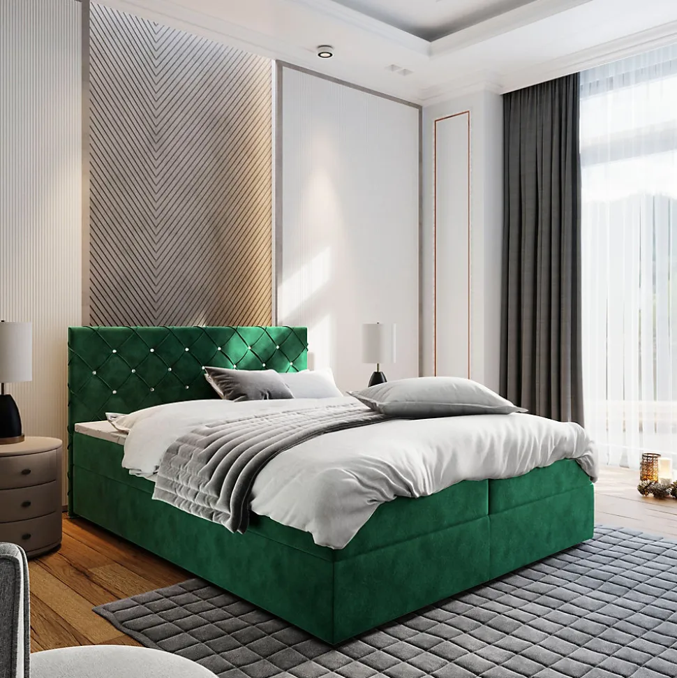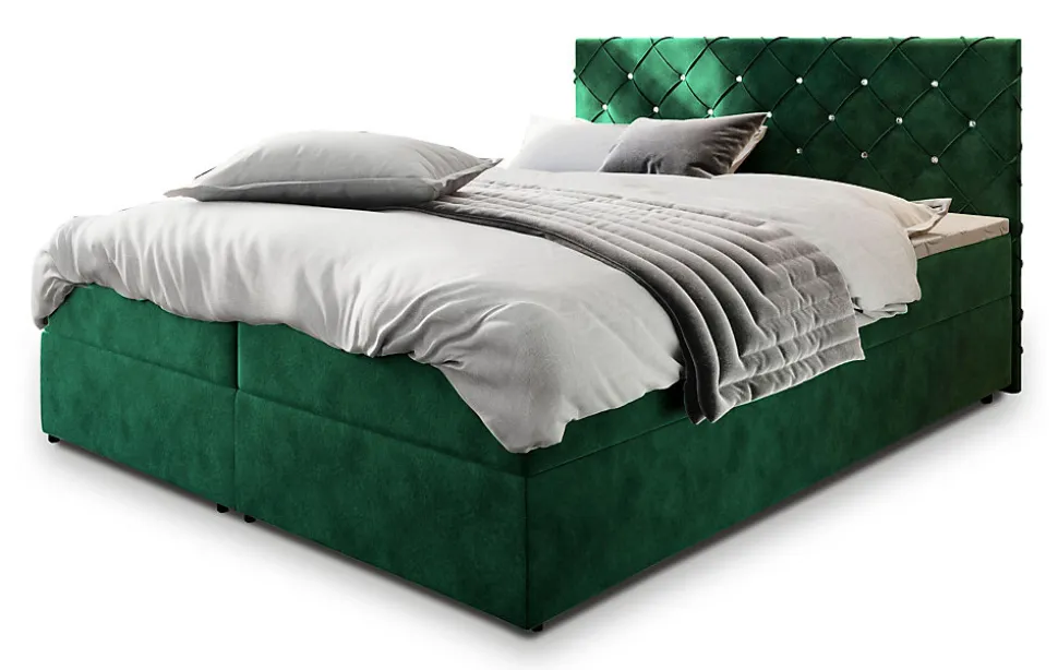 - Design élégant et contemporain – Le lit continental Glamour séduit par son style raffiné et sa finition soignée. Son revêtement en tissu Tkanina welurowa de type MAGIC VELVET et sa couleur Vert foncé s’intègrent parfaitement à tout type d’intérieur.