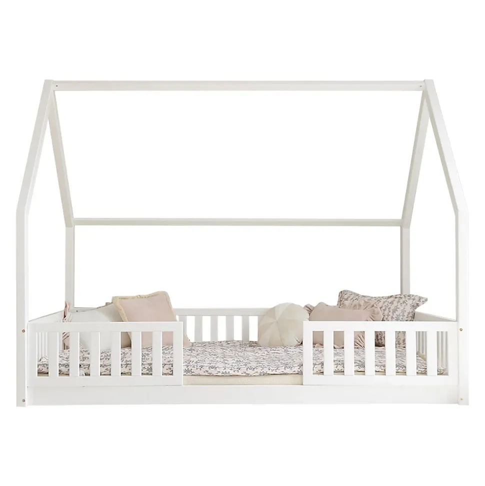 Lit cabane 140×200 barrières et sommier inclus pieds 1 cm Daisy Blanc