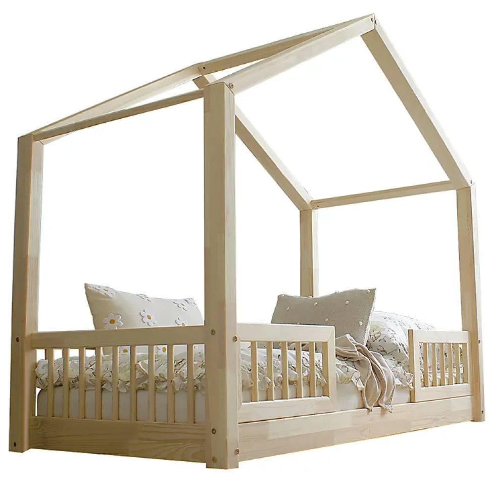 Lit cabane 90×190 barrières et sommier inclus pieds 1 cm Iris Bois