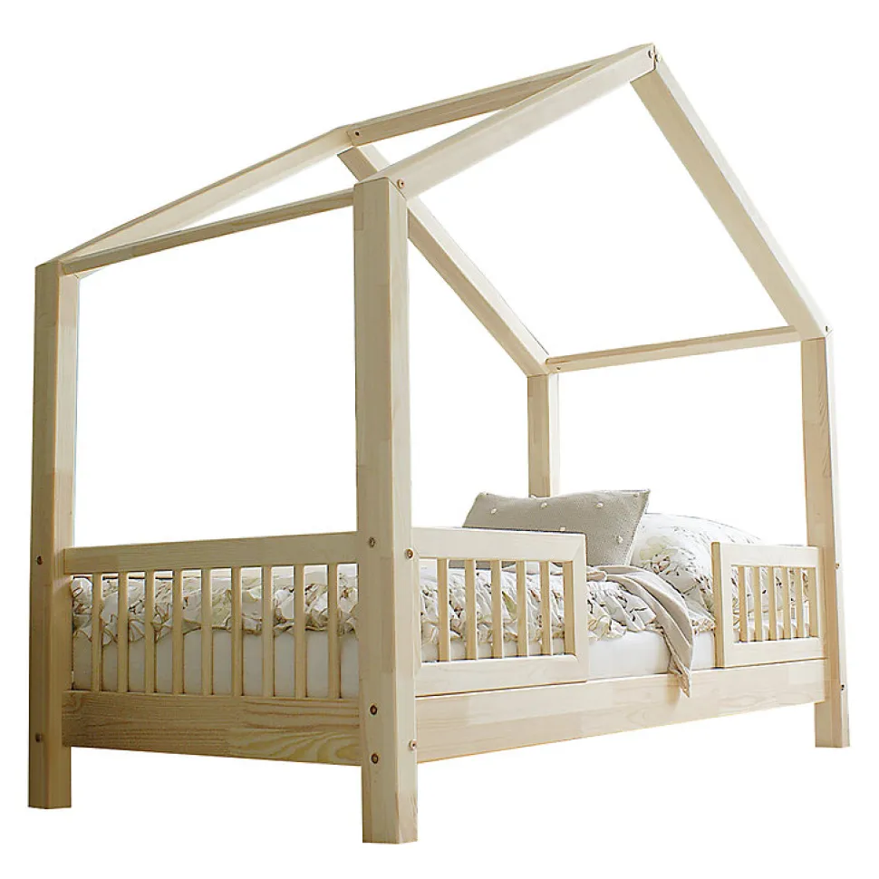 Lit cabane 90×200 barrières et sommier inclus pieds 10 cm Iris Bois