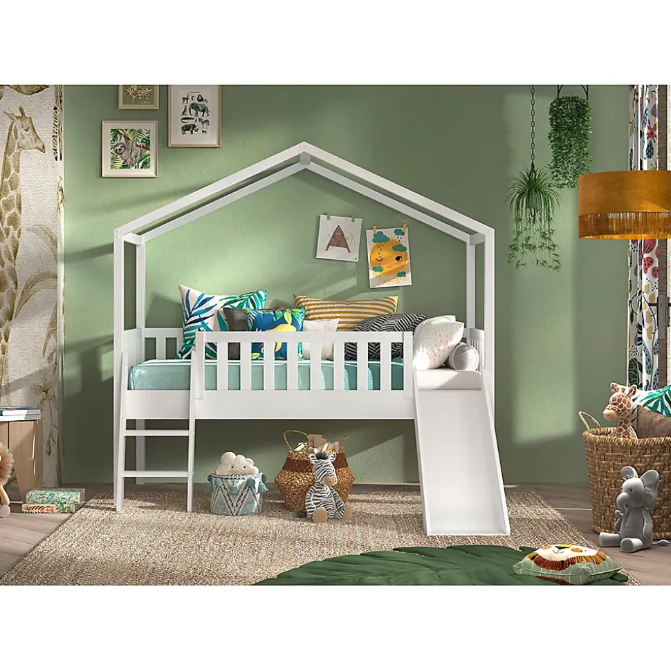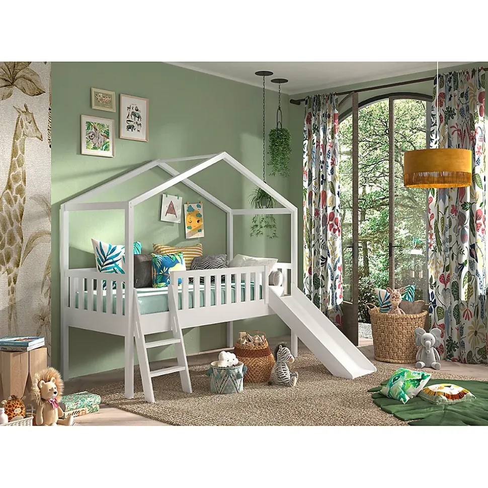 Lit cabane 90×200 toboggan Vipack Dallas Blanc