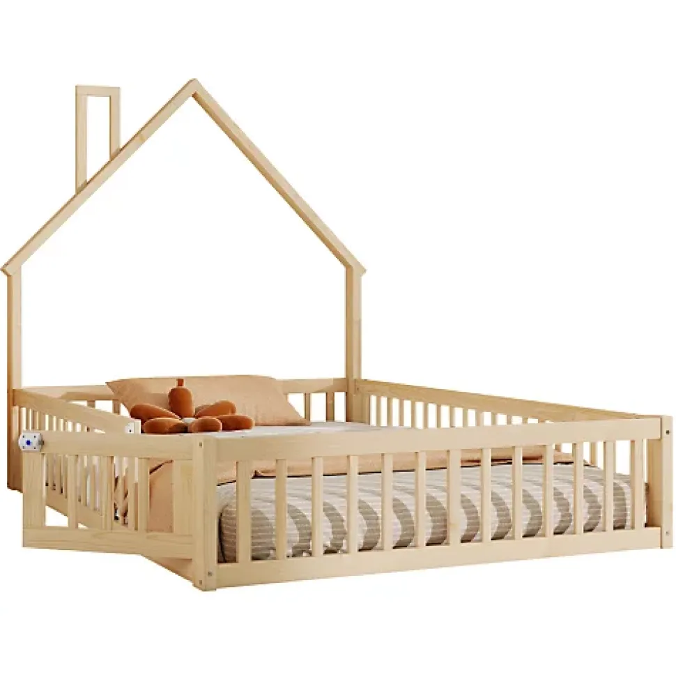 Spécifications● Couleurs du produit : Naturel● Dimension du produit : 198x151x165cm● Matériau du produit : Bois de pin + MDF● Poids du produit : 18.5kg● Capacité de charge : 150kg● Épaisseur recommandée du matelas : 15-20cm(Matelas non inclus)● Montage requis : Oui● Nombre de colis : 1Attentions● La livraison comprend un cadre de lit, un sommier à lattes. Le matelas n’est pas compris dans la livraison.● Si vous avez des questions pendant l’installation, veuillez nous contacter dès que possible.