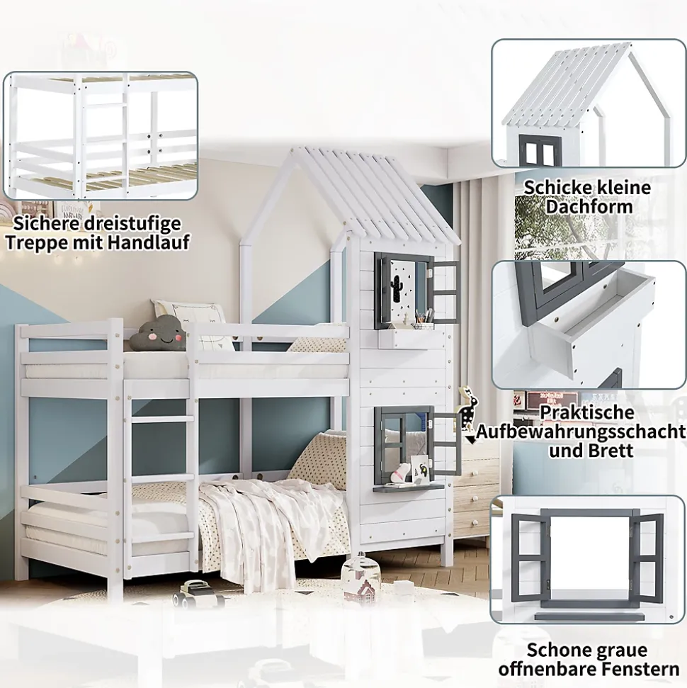 ▶ ▶ Détails ▶────────────────● Nom du produit : Lit superposé avec double fenêtre● Dimensions totales : 208 × 96 × 229,5 cm● Poids total : 59,5 kg● Matelas compatibles (le lit ne contient pas de matelas) : 200 × 90 cm● Capacité de charge : 120 kg● Couleur : Blanc● Matériau du cadre : Pin + MDF● Matériau des lattes : Bois● Méthode de montage : Auto-assemblage● Nombre de colis : 3► Remarques ►※ Le produit est livré en 3 colis, qui peuvent ne pas arriver simultanément. Veuillez faire preuve de patience.※ En raison de mesures manuelles, des écarts de 2 à 3 cm peuvent survenir.※ Toutes les images produits sont prises avec le produit réel, mais des différences de couleur peuvent survenir à cause de l’exposition au soleil ou d’autres facteurs.※ Si vous avez des questions lors de l’installation, contactez-nous rapidement.