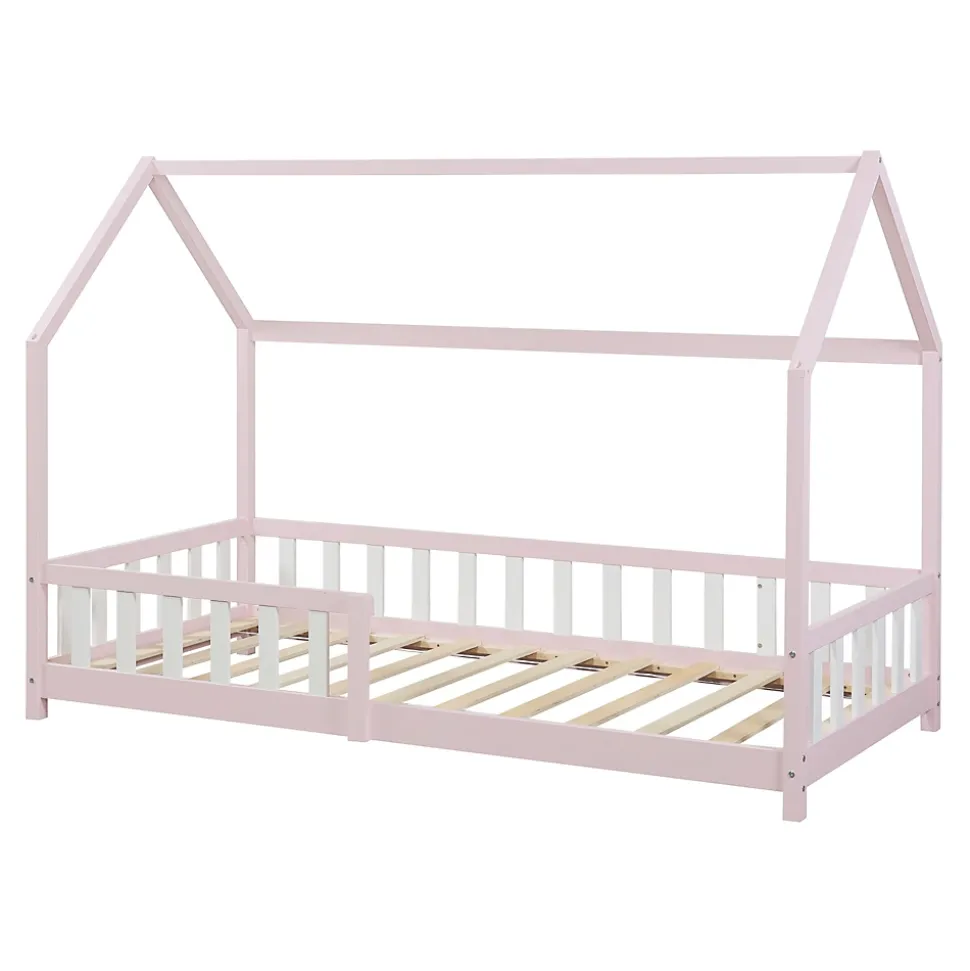 Lit enfantTransformez la chambre de votre enfant en un petit paradis accueillant pour dormir et jouer avec notre lit cabane en bois naturel. équipé d’une barrière protectrice à la fois décorative et utile, votre enfant sera toujours en sécurité pendant son sommeil. Avec son toit en forme de maison, il crée instantanément une ambiance cocooning. Qu’il s’agisse d’une chambre au design moderne ou classique, notre lit pour enfant s’adapte à tous les styles d’intérieur.Description :- lit cabane en forme de maison- s’adapte à différents styles de décoration- barrière protectrice pour un sommeil tranquille- construction robuste et montage facile- capacité de charge : 120 kgMatière :- cadre du lit : bois de pin- sommier : contreplaquéDimensions :- totales (longueur x largeur x hauteur) : 205 x 96 x 143 cm- surface de couchage (longueur x largeur) : 200 x 90 cm- distance entre le sol et le bas du toit : 94 cm- largeur de l’ouverture de la barrière : 97 cm- hauteur de la barrière : 40 cm- hauteur du pied : 5,5 cmCouleur :roseContenu de la livraison :1 x lit enfant1 x sommier à lattes standard (modèle simple)A noter :Le matelas, l’oreiller, la couverture et tous les autres objets de décoration ne font pas partie de l’offre.Produit de la marque :[en.casa]