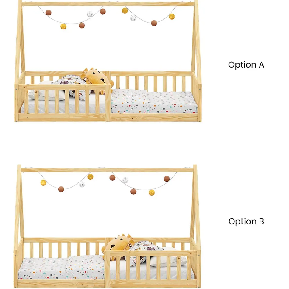Le lit cabane Nicolas … allie sécurité et confort avec son design en bois de pin massif. Spécialement pensé pour les enfants et les bébés, il facilite une transition en douceur vers l’autonomie grâce à sa structure au sol inspirée de la méthode Montessori. équipé d’une barrière de sécurité, il garanti des nuits tranquilles, offrant aux jeunes enfants un espace sécurisé où ils peuvent rêver et grandir en tout sérénité. Description des matériaux : – La structure du lit est en pin massif de coloris naturel. – La madrure du bois reste visible. Caractéristiques du produit : – Couchage: 90 x 190 cm – Position de la barrière modulable (droite ou gauche) – Sans sommier et sans matelas – Barrières de protection – Design en forme de cabane Livraison et montage : – Contenu de la livraison : Cadre de lit, sans décoration, notice de montage – Le produit est livré en pièces détachées – Assemblage facile grâce à la notice – Sans sommier et sans matelas – Photo non contractuelle Résumé: – Hauteur cadre de lit: 9 cm – Hauteur pan de lit: 9 cm – Hauteur pied de lit: 42 cm – Hauteur tête de lit: 42 cm – Profondeur d’insertion: 60 cm – Consignes de sécurité: Protection contre les chutes – Convient uniquement avec: Sommier fagot à lattes – Sommier: vendu séparément – Surface: Lasuré, La madrure du bois reste visible – Dimensions monté: 132 x 197 x 96 cm (H x L x L) – Couchage: 90 x 190 cm – Couleur: Naturel – Matériel: Pin massif