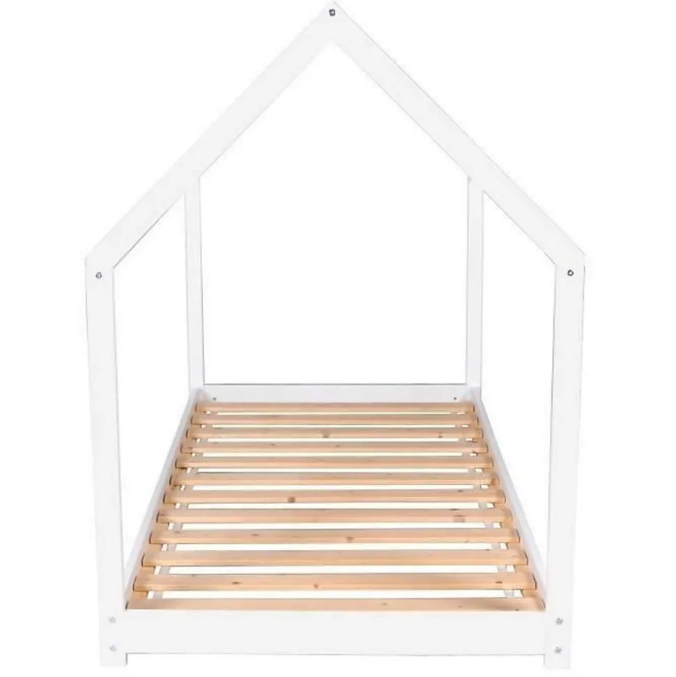 Lit Cabane PANDA 90 x 190 cm / BlancEspace Ludique et Confortable ! Transformez la chambre de votre enfant en un univers magique avec ce lit cabane design, alliant bois naturel robuste et structure noire élégante. Le lit cabane stimule l’imagination tout en offrant un couchage confortable. Parfait pour les petits aventuriers ! Idéal dès 4 ans. Style moderne, espace optimisé – Un cadeau qui fait rêver ! #LitEnfant #DécorationChambreCaractéristiques : – Structure en épicéa ou tilleul massif- Finition : laqué blanc- Sommier à 12 lattes inclus.- Hauteur hors tout (en cm) : 135- Largeur hors tout (en cm): 97- Longueur hors tout (en cm): 195- Capacité de charge maximale : 80 kg- Age minimal d’utilisation : 4 ans – Ne convient pas aux enfants de moins de 4 ansConditions d’entretien: Ne pas utiliser de produit abrasif, solvant ni diluantLivré EN KIT, à monter soi-même, notice incluse, matelas non inclus, les autres éléments de décoration d’ambiance ne sont pas inclus.Dimensions:195x135x97