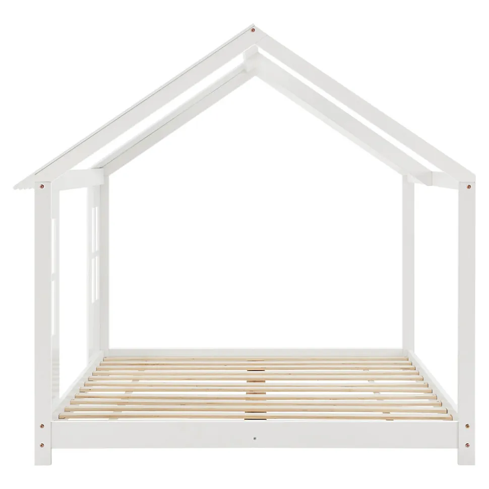 Lit enfantTransformez la chambre de votre enfant en un petit paradis accueillant pour dormir et jouer avec notre lit cabane en bois naturel. Doté d’un toit en forme de maison et de charmantes petites fenêtres, il crée instantanément une ambiance cocooning. De plus, la partie ouverte de son toit offre la possibilité de suspendre une guirlande pour encore plus de charme. Qu’il s’agisse d’une chambre de fille ou de garçon, au design moderne ou classique, notre lit pour enfant s’adapte à tous les styles d’intérieur.Description :- lit cabane en forme de maison – s’adapte à différents styles de décoration- doté de charmantes petites fenêtres- construction robuste et montage facile- capacité de charge : 200 kgDimensions :- totales (longueur x largeur x hauteur) : 207 x 147 x 148 cm- surface de couchage (longueur x largeur) : 200 x 140 cm- distance entre le sol et le bas du toit : 95 cm- largeur de l’ouverture de la barrière : 99 cm- hauteur du pied : 5,5 cmMatière :- cadre du lit : bois de pin- sommier : contreplaquéCouleur :blancContenu de la livraison :1 x lit enfant1 x sommier à lattes standard (modèle simple)A noter :Le matelas, l’oreiller, la couverture et tous les autres objets de décoration ne font pas partie de l’offre.Remarque :Pour des raisons logistiques, il n’est malheureusement pas possible de récupérer la marchandise en personne.La livraison s’effectue jusqu’au bord du trottoir ou jusqu’à la porte d’entrée de la maison, sans montage.Produit de la marque :[en.casa]
