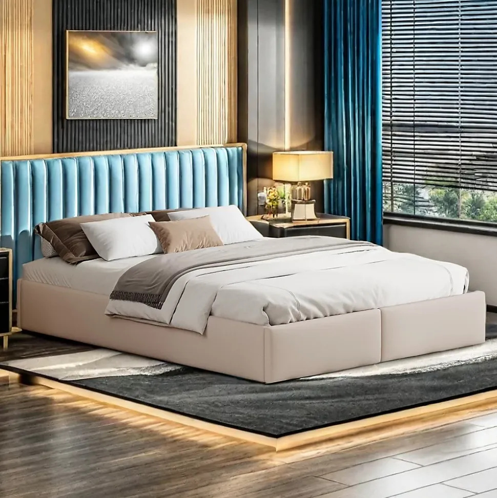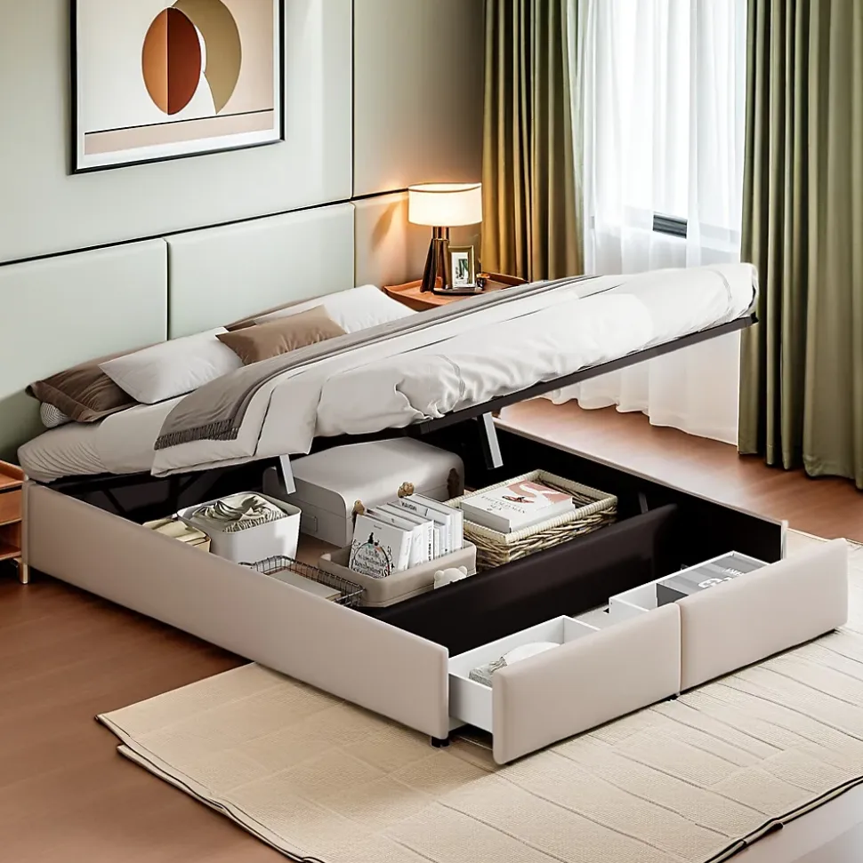 Style classique : Cadre de lit robuste, tissu en coton et lin, rangement hydraulique et deux tiroirs. Ce lit plateforme rembourré classique est idéal pour les adultes, les enfants et les adolescents, et peut également servir de lit d’appoint. Espace de rangement : Ce lit rembourré offre un grand espace de rangement pour les vêtements et les couvertures hors saison. Le cadre de lit se plie facilement grâce au vérin de levage. Deux tiroirs sont également présents aux extrémités. Stable et durable : Le cadre de lit est fabriqué en MDF massif et en panneaux de particules. La structure métallique en forme de croix offre un soutien solide et résistant et peut supporter jusqu’à 250 kg. Cette construction garantit la durabilité et la stabilité du cadre de lit. Instructions d’installation détaillées : Des instructions d’installation détaillées facilitent l’installation. Vous apprécierez encore plus ce lit double une fois installé de vos propres mains. La taille du lit est de 204 x 141 x 30cm (matelas non inclus), le lit sera expédié en deux colis depuis l’Allemagne, parfois les colis arrivent à des moments différents, mais aussi pour vous assurer que vos attentes sont satisfaites, veuillez également être patient ou contacter notre service client amical.