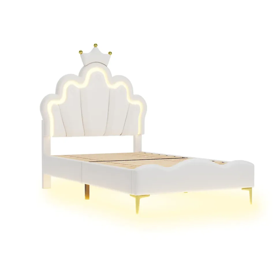 Description du produitDescription :Le lit Crown se caractérise par un design minimaliste qui incarne un style élégant et contemporain. La tête de lit est inspirée de la forme d’un nuage. Il est doux et confortable et donne à la chambre une sensation de rêve. Le lit est équipé d’un éclairage d’ambiance pour la tête de lit et le corps et dispose d’une télécommande qui permet de contrôler facilement l’ambiance de la pièce. L’ensemble du lit est conçu avec élégance et goût et donne à votre chambre une sensation de luxe. Que vous préfériez un style moderne, minimaliste ou européen, le lit couronne s’adapte parfaitement et ajoute une touche de classe et de romantisme à votre maison.Description et dimensions :Matériau du lit : MDF + cuir synthétique + métalDimensions : 90 x 200 cmCouleur : blanc/rose.Nombre de colis : 1.Assemblage requis : oui.Dimensions du produit : 208 x 92 x 130.5 cmDimensions du colis : veuillez vous référer aux spécificationsDimensions intérieures du lit : 90 x 200 cm.Hauteur totale : 129 cmCharge maximale : 150 kg.Nombre de sommiers à lattes : 12 pièces.Épaisseur du matelas recommandée : 10-15 cm