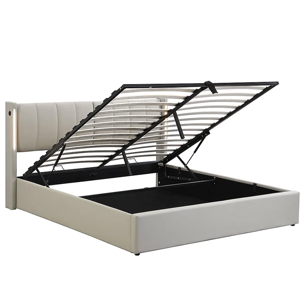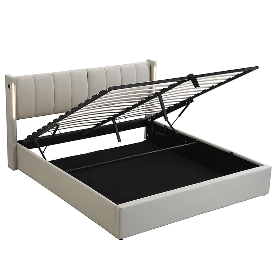 Design multifonctionnel – Ports USB intégrés, éclairage LED & dossier réglable en 3 positions pour un confort optimal. Contrôle intelligent – Lampe de chevet LED avec télécommande pour ajuster la luminosité & la fréquence de clignotement selon vos besoins. Imperméable & facile à entretenir – Revêtement en PU de haute qualité, résistant aux liquides & facile à nettoyer. Moderne & élégant – Design sophistiqué avec interfaces Type-C & LED, parfait pour un intérieur contemporain. Confort & stabilité – Inclinaison réglable de 0 à 30°, capacité de charge jusqu’à 300 kg, épaisseur de matelas recommandée : max. 28 cm.Détails du produit :Dimensions du lit : 140 x 190 cmMatériau : Revêtement en PUSommier à lattes : InclusMatelas : Non inclusRangement : Sous le litPoids : 44 kgCapacité de charge maximale : 300 kgAngle d’inclinaison : 0-30°Puissance LED : 4WÉpaisseur du matelas recommandée : Max. 28 cmRemarques :Une légère marge d’erreur (1-2 cm) est possible en raison des mesures manuelles.De légères différences de couleur peuvent apparaître en fonction des réglages de l’écran & de l’éclairage.Livré en 2 colis, qui peuvent arriver séparément.Pour toute question concernant l’installation ou l’utilisation, notre service client est à votre disposition.