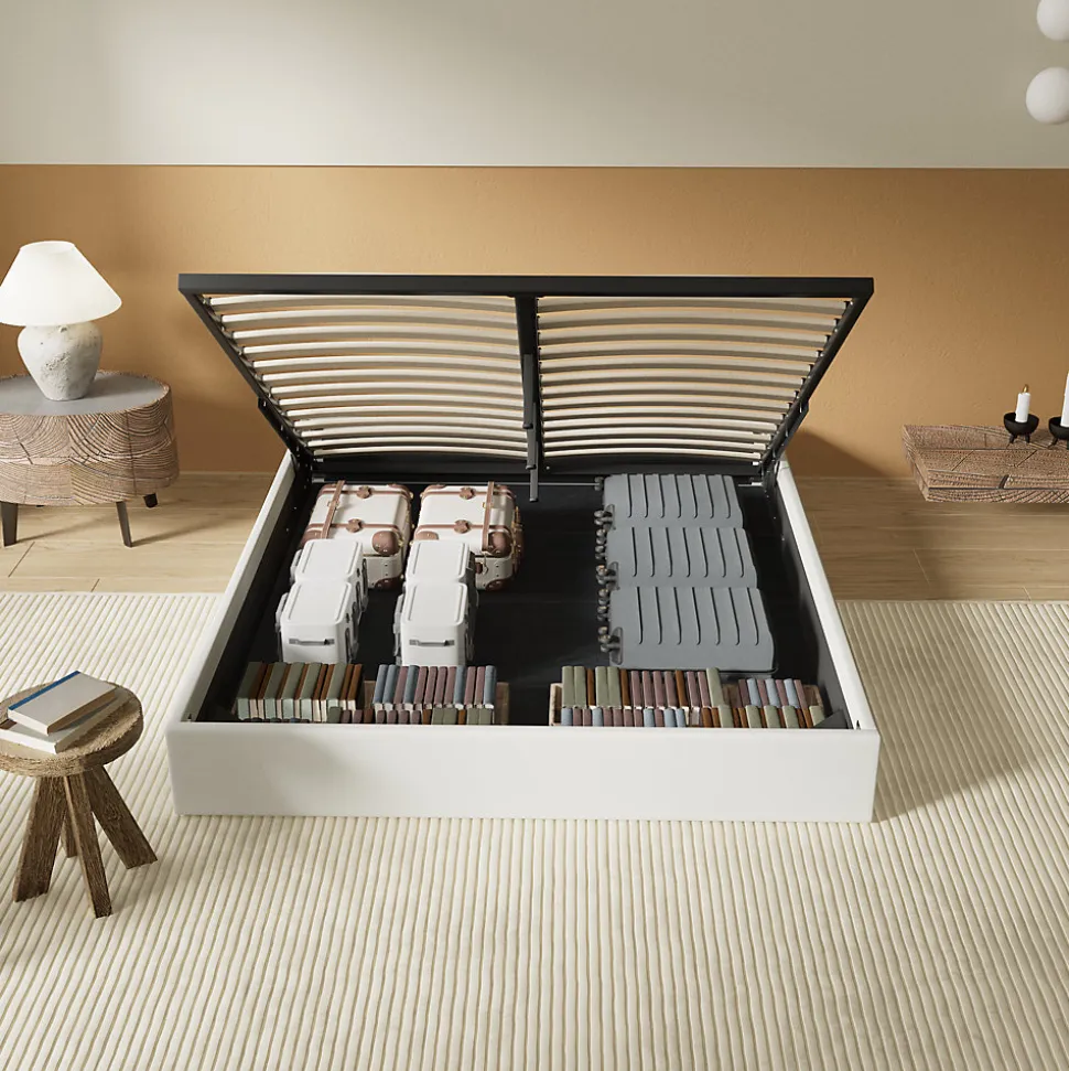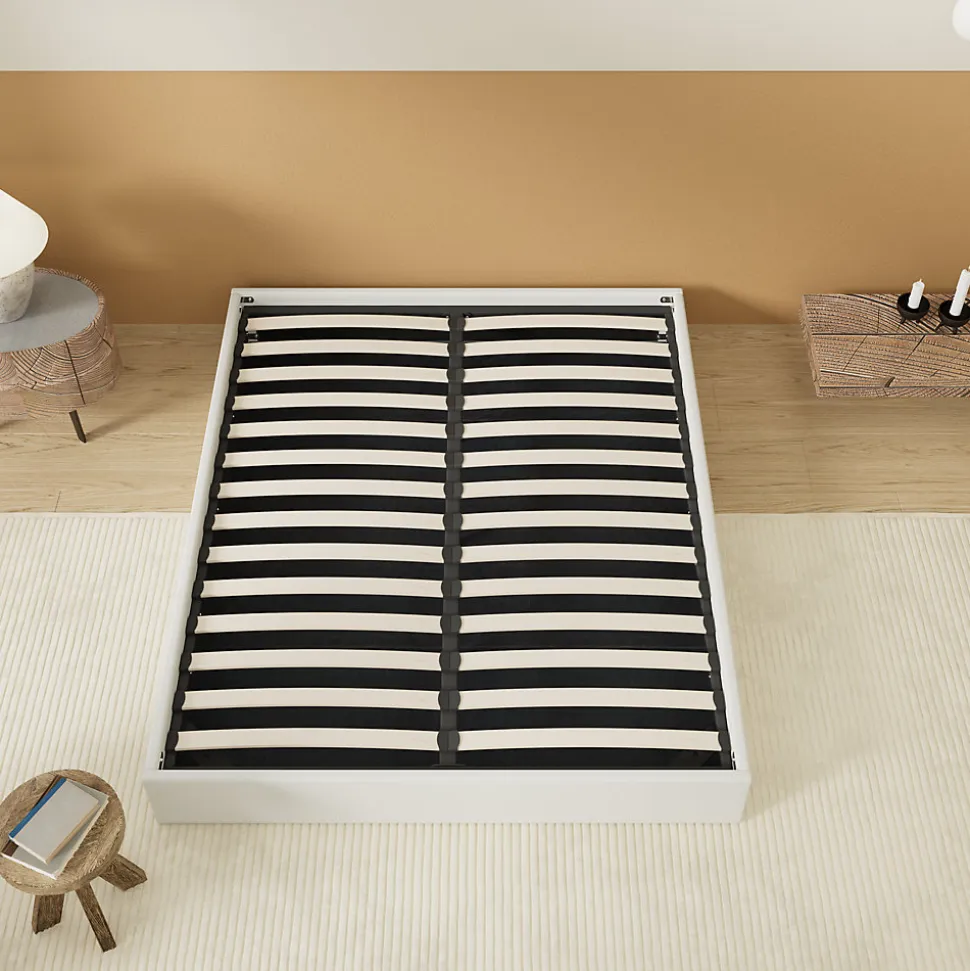 Lit Coffre 140 x 200 cm – Sommier à lattes en bois – Cadre en tissu blanc