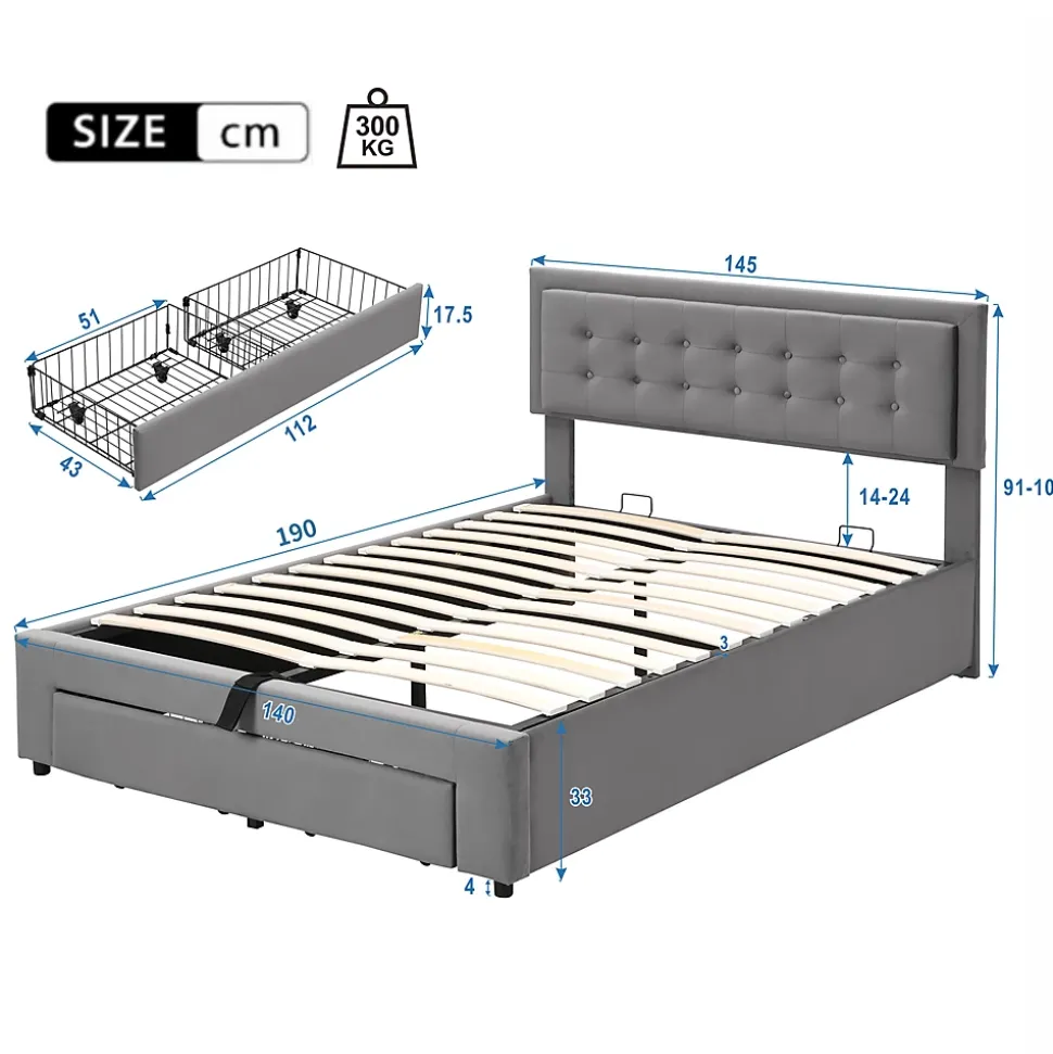 - 【Rangement Pratique et Efficace】 Ce lit est équipé d’un système de rangement puissant avec des barres hydrauliques et des tiroirs à mailles métalliques, permettant de stocker vos objets et de garder votre chambre propre et bien organisée tout en étant facile à nettoyer.